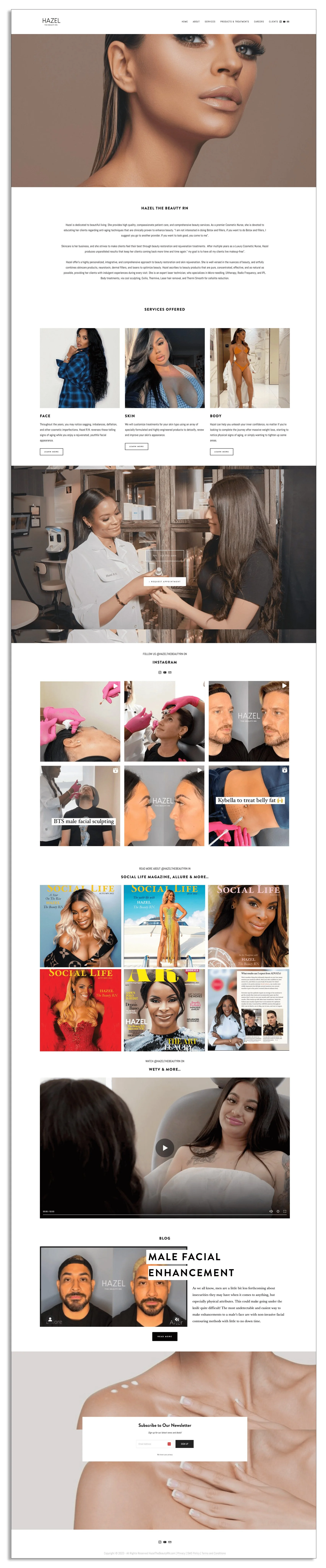 Behind the scenes, we also built her SEO strategy using keyword-rich content to help her stand out in searches like New York cosmetic injector, skincare nurse practitioner NYC, and laser treatments near me. Every piece of copy was written to connect with real people while boosting her visibility online. The final result is a polished, elegant brand and website that speaks to who Hazel is: a skilled professional with a passion for helping her clients feel beautiful and confident.